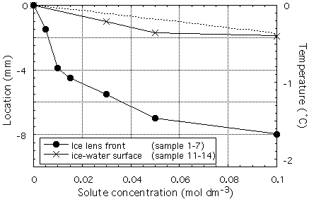 塩が添加されると、アイスレンズの成長面の温度は低下し、厚さが薄くなります。