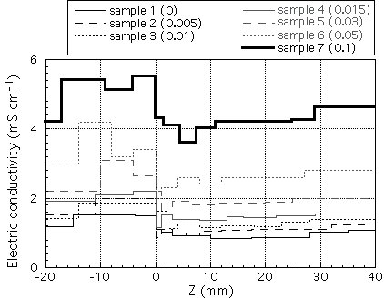 また、アイスレンズからの吐きだしのため、アイスレンズの成長にともない、試料中の塩濃度分布に再配分が生じます。