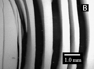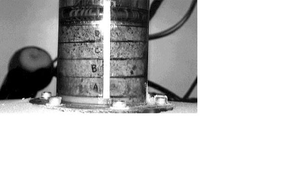 ガラス粉粒体中のアイスレンズ 大谷石中のアイスレンズ